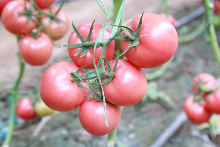 光照对番茄果实色素的转化有较大影响。当植株行间郁闭时,通风透光性弱,很容易导致果实转色不良,但也不能为了增加通风透光性而把果实周围的叶片都摘了,这样反而会导致强光直射果面而发生日灼现象,降低果实的商品性。因此,合理摘叶是促进果实转色的重要措施,摘叶时要注意两点:一是果实上部叶片“多而不挤”。果实上部的叶片不要摘,即使是老叶,也尽量不要摘掉,这些叶片可以充当果实的“遮阳伞”,减少日灼发生。二是果实下部叶片要“少而精悍”。果实下部的叶片不要全部去除,适当预留一两片功能叶,保证植株的光合作用,促进膨果和转色。