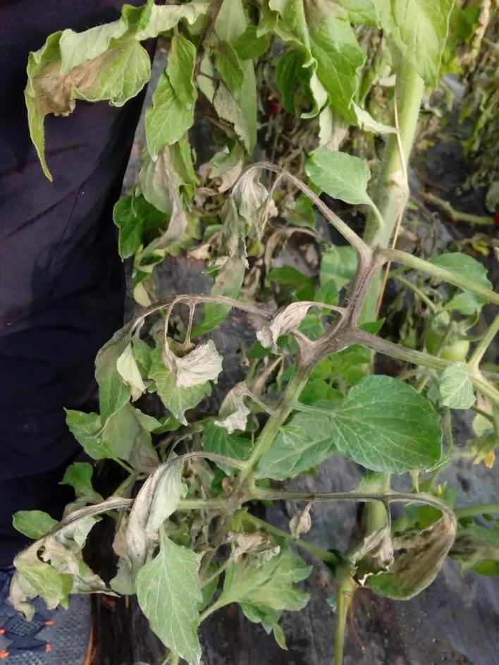 晚疫病发病初期,可选用嘧菌酯、霜脲·锰锌、氟吡菌胺·霜霉威等药剂,或选用烯酰吗啉/霜脲锰锌/氰霜唑+多抗霉素+海藻酸等配方药剂;严重时,可选用以下配方:氟吡菌胺霜霉威+精甲霜锰锌+乙蒜素+海藻酸、氟菌霜霉威/氟吗啉·吡唑醚菌酯+氯溴异氰尿酸+武夷菌素+氨基酸。