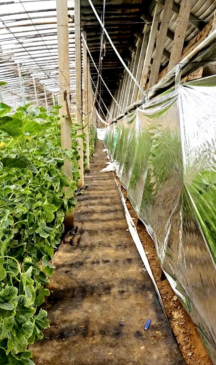 冬季气温低,光照时间短,瓜类等喜高温蔬菜需要一些辅助设备增温补光,银色反光膜就是其中之一。种植户表示,大棚后墙悬挂银膜成本低、安装简便,能起到“增温提亮”的效果。