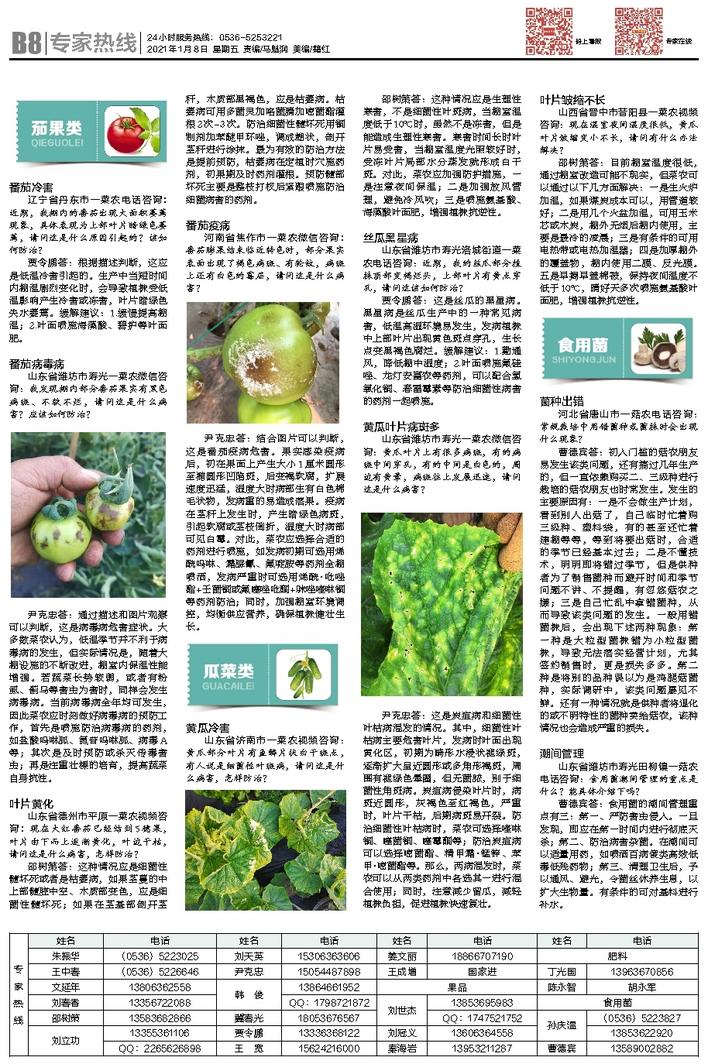 北方蔬菜报JSA12专家热线