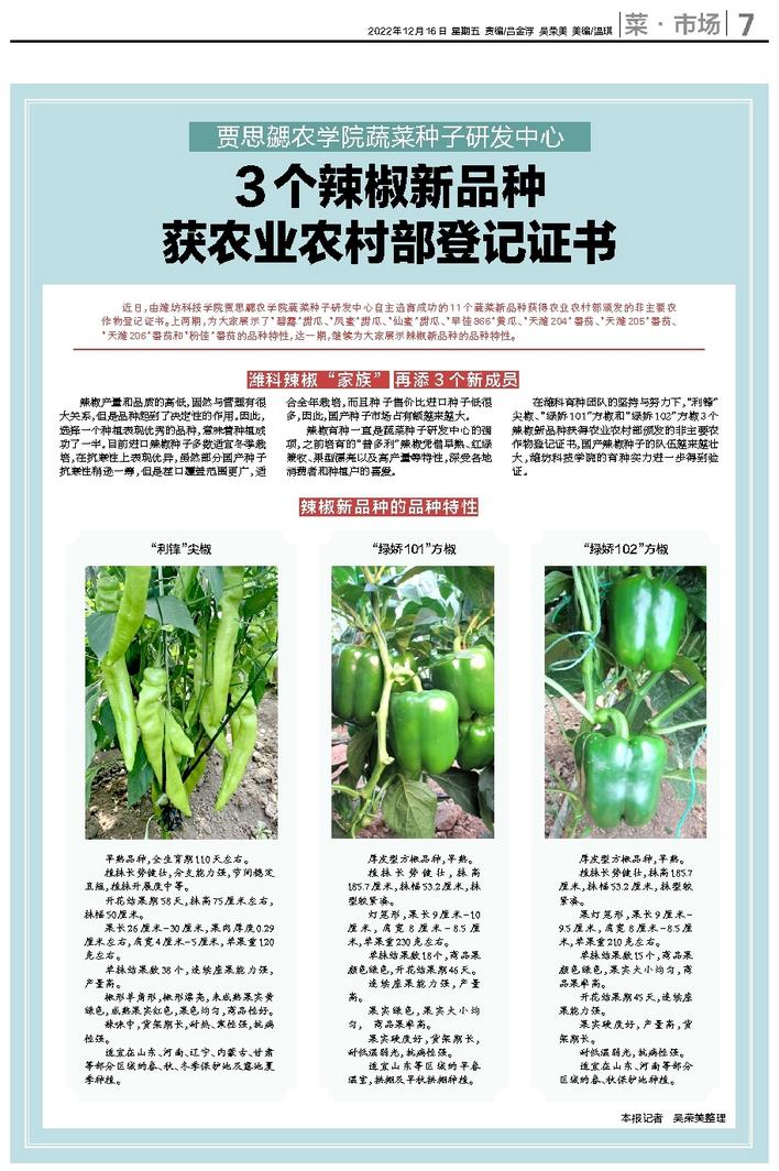 3个辣椒新品种获农业农村部登记证书