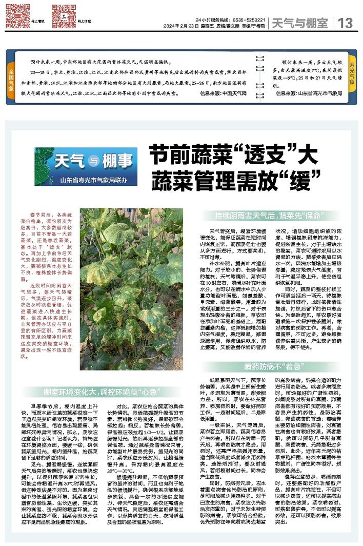 北方蔬菜报JSA13天气与棚室