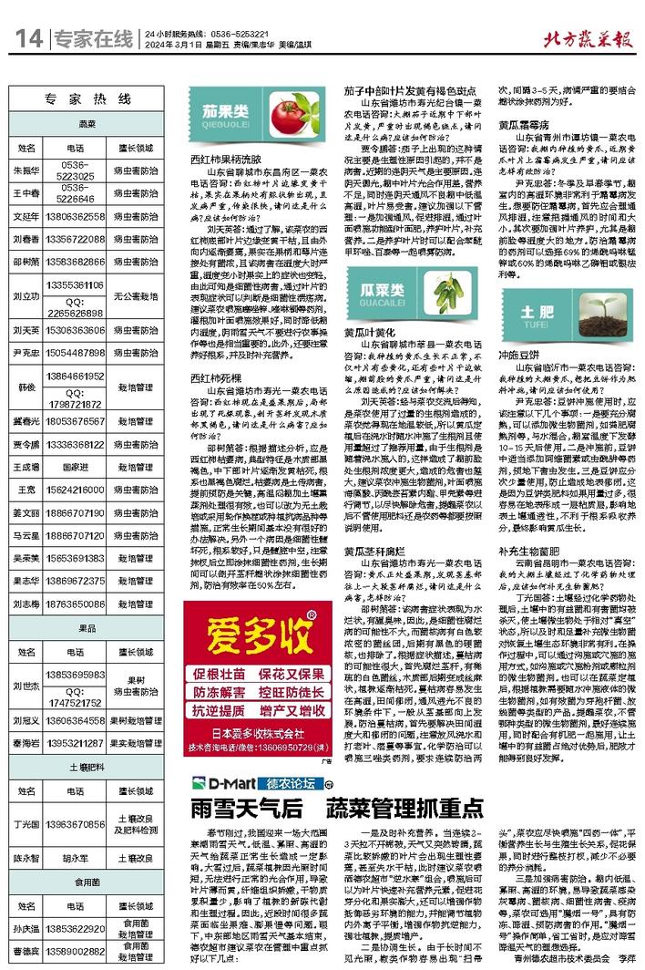 北方蔬菜报JSA14专家在线