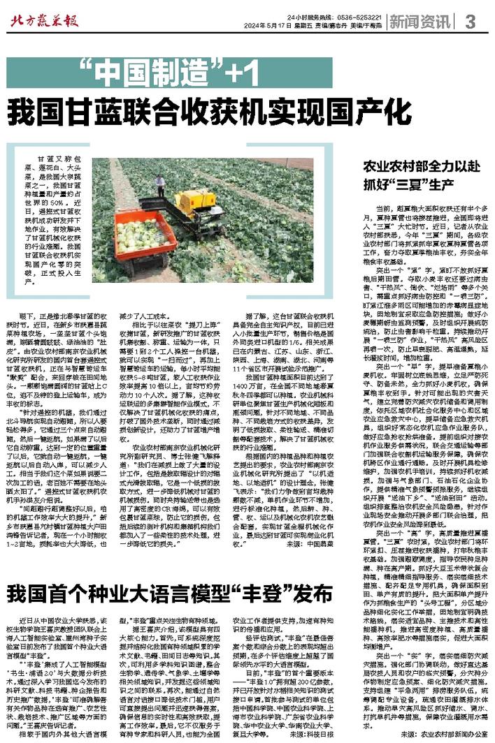 “中国制造”+1我国甘蓝联合收获机实现国产化