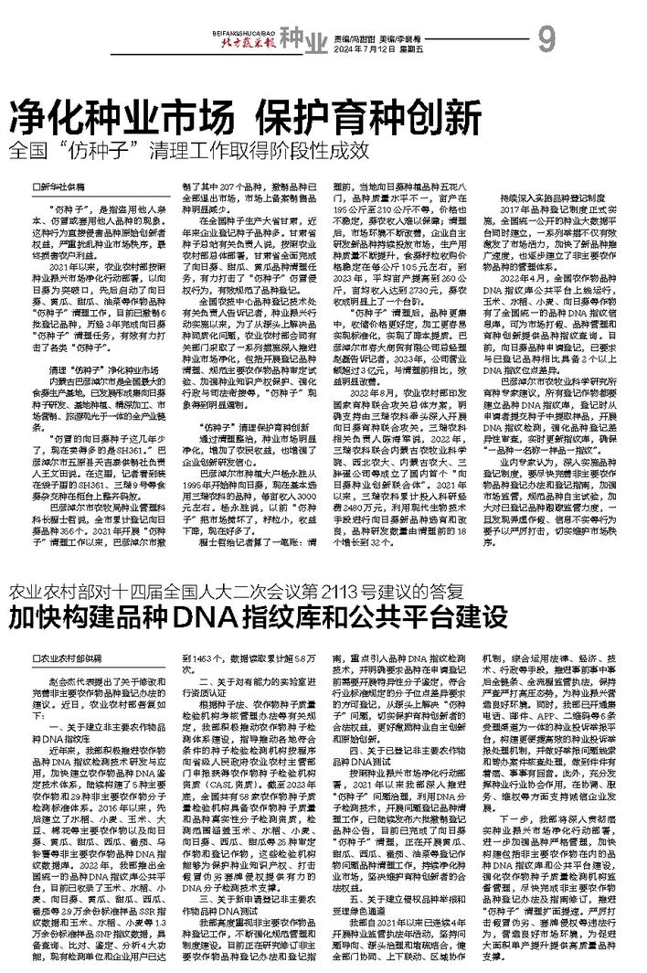 净化种业市场保护育种创新