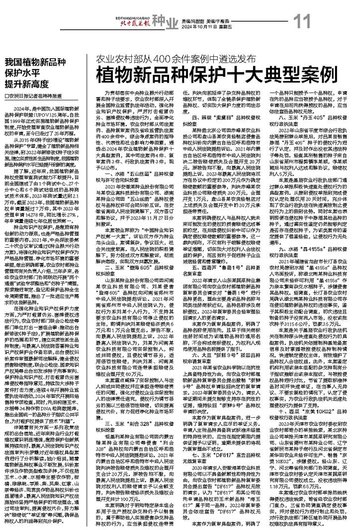 植物新品种保护十大典型案例