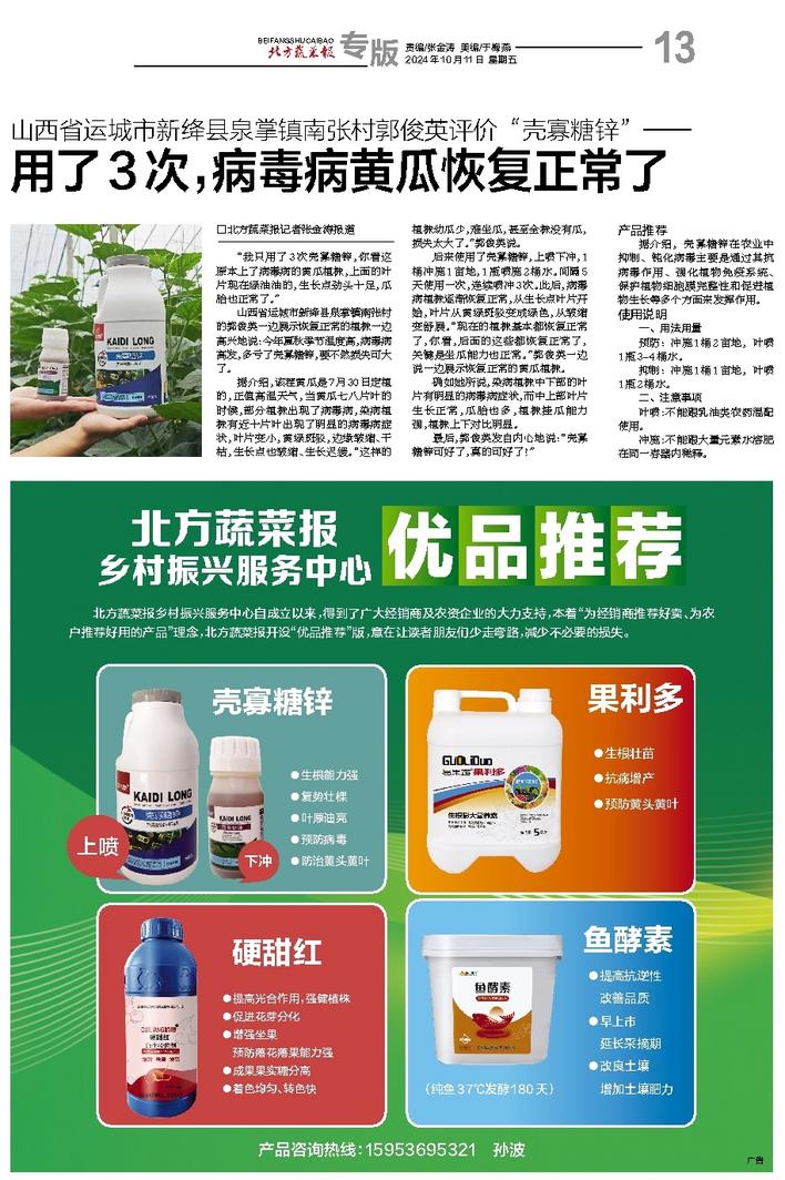 用了3次,病毒病黄瓜恢复正常了