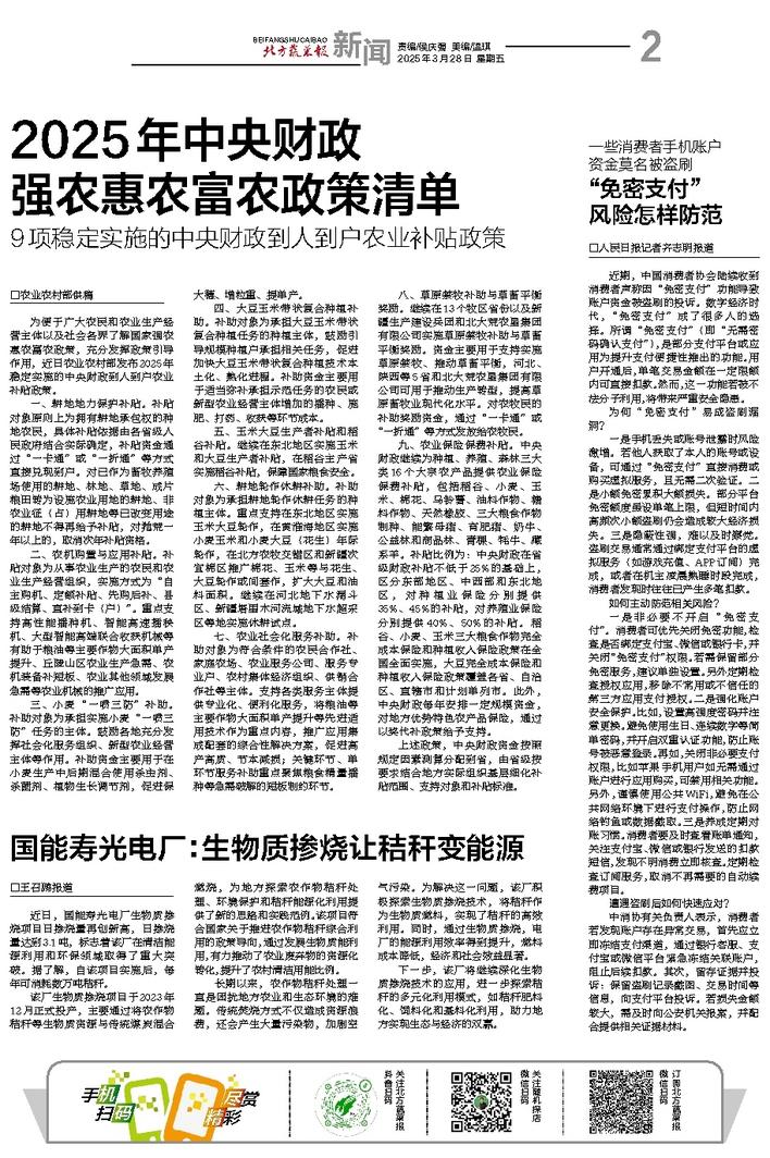 2025年中央财政强农惠农富农政策清单