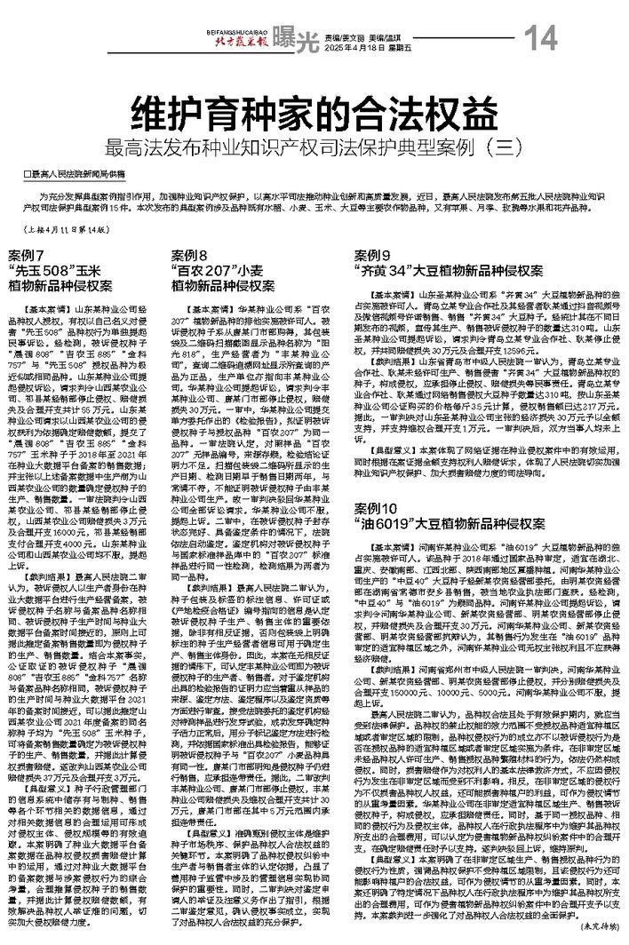 维护育种家的合法权益
