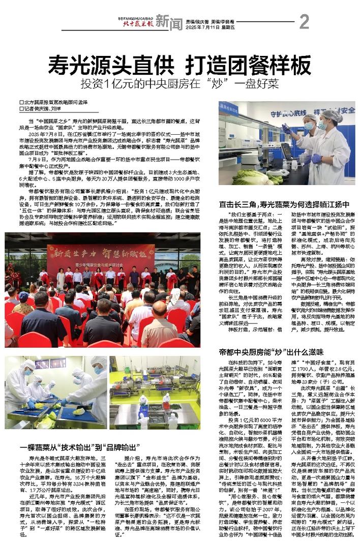 寿光源头直供 打造团餐样板