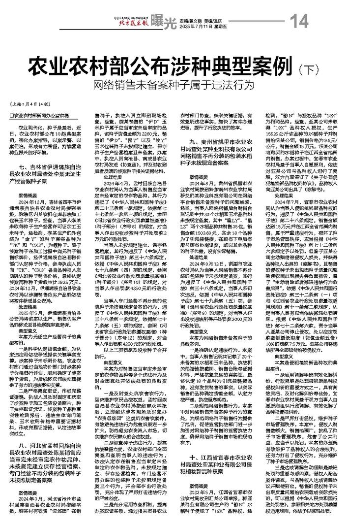 农业农村部公布涉种典型案例(下)