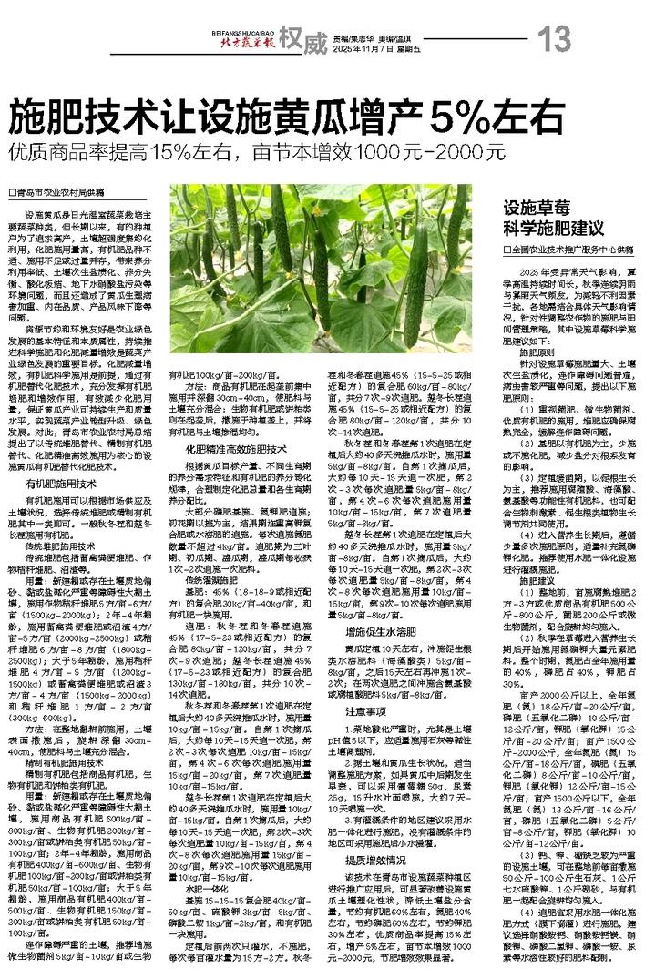 施肥技术让设施黄瓜增产5%左右