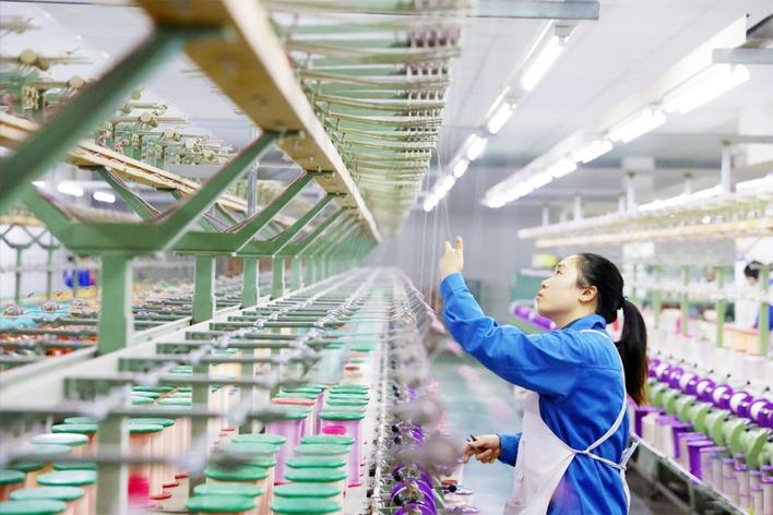 1月2日,在重庆市黔江区正阳工业园区一家丝绸企业,工人在生产车间工作。元旦过后,全国各地的企业纷纷开足马力抓紧生产,力争新年“开门红”。