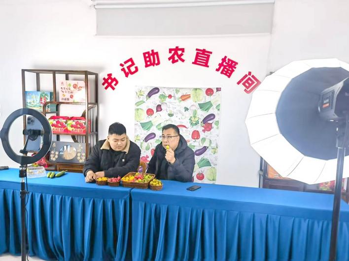 日前,在田柳镇薛家村村委的“书记助农”直播间,村党支部书记陈冰正向网友仔细地介绍当地所产的特色农产品。